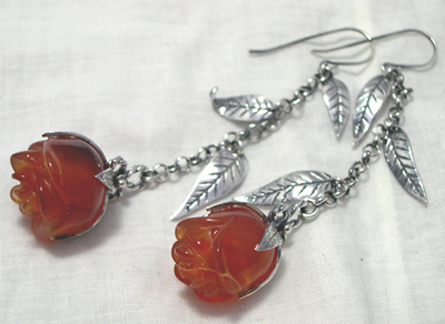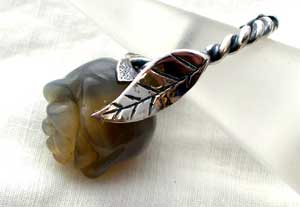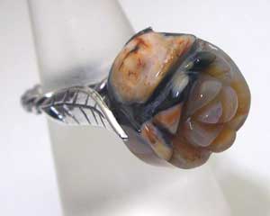 ***立体感ある、バラのカービングがほどこされたメノウを配しました***
