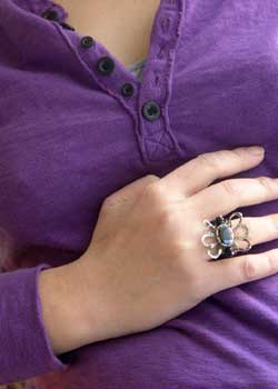 これからのパーティーシーズンにピッタリな、 シックな配色ながら、 華やかなデザインのリングです! <この石について> ***ヘマタイト*** 「勝利に導く石」といわれ兵士が戦場に持って行った石で、 自信と勇気、生命力をもたらすといわれています。 ***オニキス*** 「身を守る石」とされ、魔避けの石とも呼ばれています。 気持ちの高揚しすぎを抑え、潜在パワーを強化するといわれています。