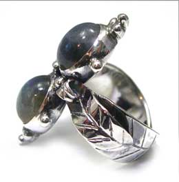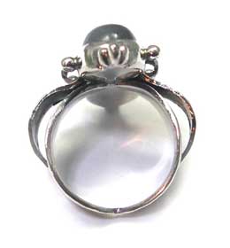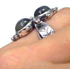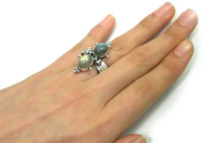 ちょっとアンティーク?な雰囲気のリングにしました♪ お花モチーフにあわせました。 反射もしっかりでます! (実物の石はベースのグレーがもうすこし、明るいグレーかもしれません) <この石について> (不要なノイズからシールドし、直感力、洞察力をもたらすといわれています)