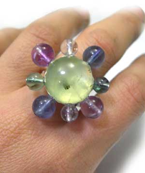 パステルカラーのPOPなリング作っちゃいました♪ つけた瞬間からわくわくしちゃいそうなおとぎの国!?のリングです♪ <この石について> ***プレナイト*** 根気強さと強固な意志を授け、 頭脳を明晰にし理性と感情とのバランスを保つ石といわれています。 ***フローライト*** 集中力や、思考力を高めるといわれています。