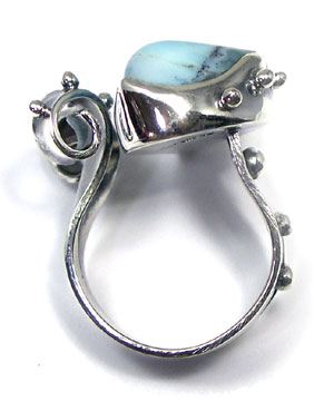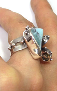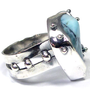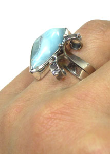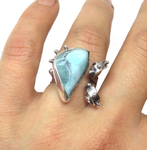 フリーサイズなので、日によって好きな指につけて 楽しんでいただけます。 <この石について> ***ラリマー*** ドミニカ共和国の鉱山から産出され、世界でたった一箇所からしか 産出されないということから、大変希少価値が高い石となってきております。 愛と平和を表す癒しの石とされています。 心の奥に隠された怒りの感情を鎮め、自分の間違った観念から解放する力があり、 自然と心を落ち着けてくれる、究極の癒しの石といわれています。