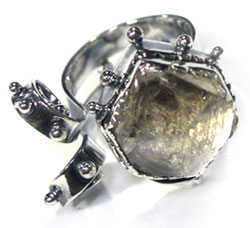 フリーサイズなので、日によって好きな指につけて 楽しんでいただけます。 現在の在庫で、リングサイズのハーキマーは これで最後です!人気の石ですのでお早めに! <この石について> ***ハーキマーダイヤモンド*** アメリカで産出する宝石の中でも珍しいものとして、ハーキマーダイヤモンドが存在します。 世界でもニューヨーク州ハーキマー地区でのみ産出する天然クォーツで、 通常は柱状に成長するのですが、ハーキマーのみ粒状に成長し、 ダイヤモンドの八面体結晶に似た、美しい六面体結晶となります。 ハーキマーで産出される輝きが強いクォーツに与えられた『ハーキマーダイヤモンド』の名称は、 かつてはダイヤモンドと誤解を受ける誤称とされましたが、 現在はクォーツの中でも特別な宝石として名称が定着しています。 柱状結晶から部分的に研磨されるクォーツと違い、 砂岩の中にある空洞で粒状に成長するハーキマーダイヤモンドは、 その自然の造形を楽しむものとして一切の研磨や人工的処理を行いませんので、 自然の創り出した宝石の奥深さが伝わってきます。 ひとつとして同じ宝石が見つからないハーキマーは、 完全な天然自然の創造物となる神秘的なクォーツです。 ただし、商業的に採掘されている宝石ではなく、まとまった採掘がない為に流通数が限られています。 古代では魔術的な力があると信じられ、 またその輝きから希望を象徴し、霊感力、直感力を高めると言われています。