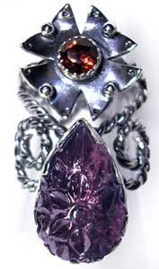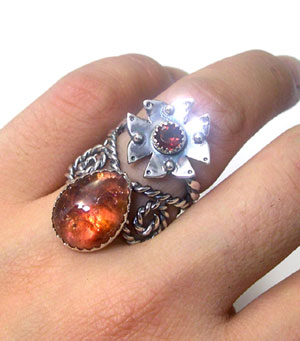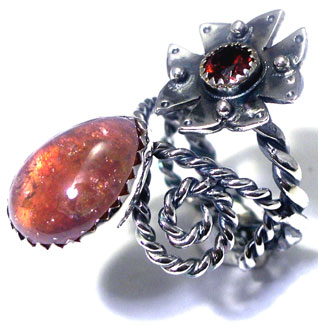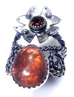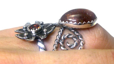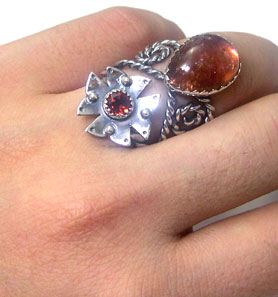 カットガーネットと、インクルージョンがかえって素敵なトルマリンの 2石を配した、ちょっとゴージャスなイメージ漂うリングです。