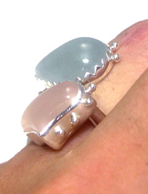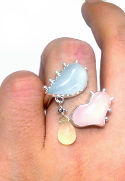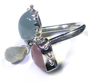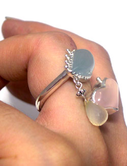 ローズクオーツ・アクアマリン・イエローカルセドニー の3種の石をシンプルに配したリングです! こんなかわいい石に、これ以上の飾りはいらないですよね!?(*^-^*)
