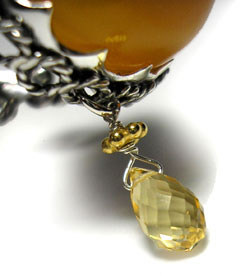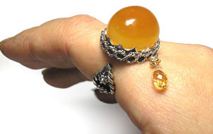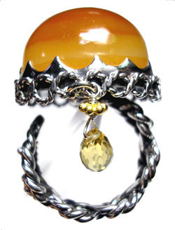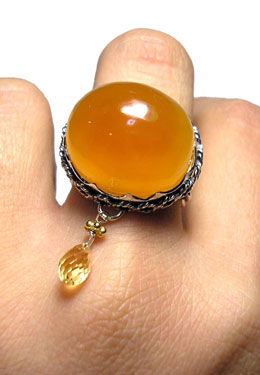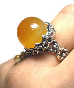 ご好評の「ころっとリング」にキラッと、涙型の下がった石で 子供っぽくならず、動きを出しました! しっかりした黄色のめのうを配しました。 <この石について> めのう 情緒、肉体、知性面のバランスをもたらし、 陰と陽、つまり万物を適切に配置させるプラスとマイナスの力を調和させます。 心や体を和らげ、落ち着かせ、作用は緩やかですが非常に強力だといわれています
