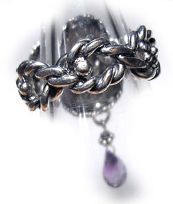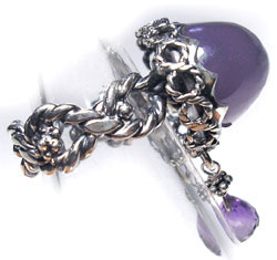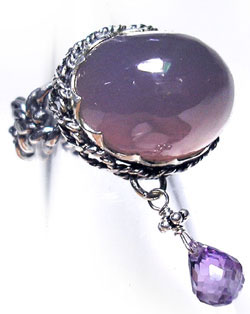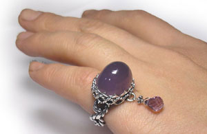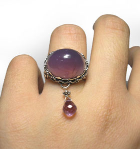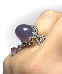 ご好評の「ころっとリング」にキラッと、涙型の下がった石で 子供っぽくならず、動きを出しました! つややかな紫のカルセドニーを配しました。 <この石について> カルセドニー 未来に光を与えてくれる石。もう一歩前に進む勇気が欲しい時や、 自信が持てず迷いでいっぱいになってしまった時に マンネリを打破してくれます。o(`_')○パーンチ!