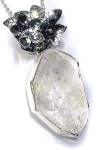 立体感のあるモチーフのバチカンで ハードかつ女性らしいデザインのペンダントトップです。 (チェーンは付属しませんので、ご希望の方はお申し付けくださいm(_ _)m) <この石について> ***ハーキマーダイヤモンド*** アメリカで産出する宝石の中でも珍しいものとして、ハーキマーダイヤモンドが存在します。 世界でもニューヨーク州ハーキマー地区でのみ産出する天然クォーツで、 通常は柱状に成長するのですが、ハーキマーのみ粒状に成長し、 ダイヤモンドの八面体結晶に似た、美しい六面体結晶となります。 ハーキマーで産出される輝きが強いクォーツに与えられた『ハーキマーダイヤモンド』の名称は、 かつてはダイヤモンドと誤解を受ける誤称とされましたが、 現在はクォーツの中でも特別な宝石として名称が定着しています。 柱状結晶から部分的に研磨されるクォーツと違い、 砂岩の中にある空洞で粒状に成長するハーキマーダイヤモンドは、 その自然の造形を楽しむものとして一切の研磨や人工的処理を行いませんので、 自然の創り出した宝石の奥深さが伝わってきます。 ひとつとして同じ宝石が見つからないハーキマーは、 完全な天然自然の創造物となる神秘的なクォーツです。 ただし、商業的に採掘されている宝石ではなく、まとまった採掘がない為に流通数が限られています。 古代では魔術的な力があると信じられ、 またその輝きから希望を象徴し、霊感力、直感力を高めると言われています。