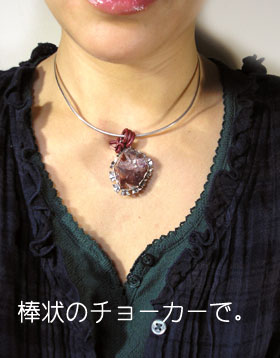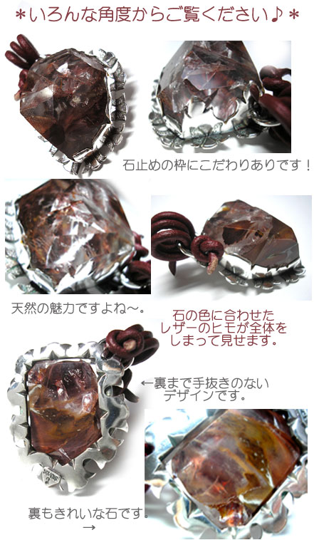 ●N_Top07● SOLD OUT ![]() 赤いインクルージョン(内包物)がたまらなく魅力的な 水晶のペンダントトップです。 ぴったりな色を、と探して仕入れた水牛の太めの革ひもが バチカンの役目を果たします。 水晶のパワーと、奥深い魅力を楽しんでいただける仕上がりです。 <水晶> 万能の強運石といわれ、悩みや不安を解決し、プラスのエネルギーを 与えてくれます。ほかの石のパワーを強くすると言われています。