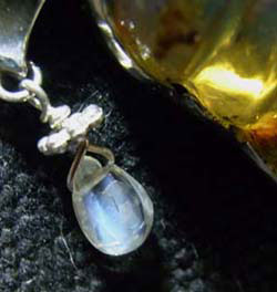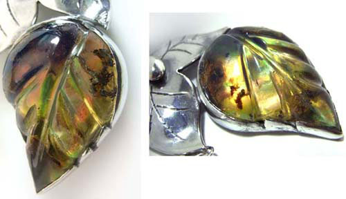 =アンバーの不思議な色合い= アンバーの下には、シェルを敷き・・・枠の底の地金にいぶしをかけ・・・など 一仕事かけて、不思議な〜〜謎めいた〜〜色合いにできました。