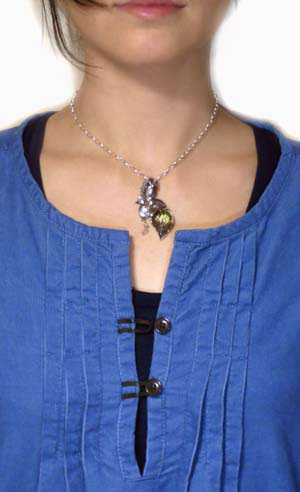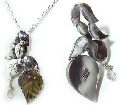 アンバーと同じような形の葉っぱを連ねたデザインを 一枚板から切り抜き、葉っぱ一枚づつ・・ ・裏からたたくことで、葉のふっくらとした表情を出したニュアンスを楽しんでいただきたい・・・ シックながらも、深みのあるペンダントトップです。