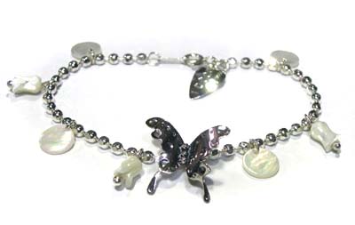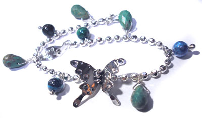 お問い合わせを多数いただき、 オーダーメイドにて販売することになりました。 シンプルながら立体的なちょうちょと、 華奢じゃない!カットボールチェーンが 可愛い、チェーンブレスレットです。