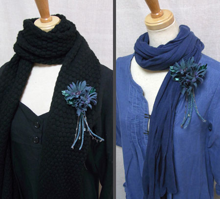 をイメージした怪しげな、ブルー×パープルのコサージュです。