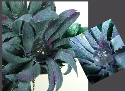 裁断・染め・コテあてまですべて自作で制作した初登場のコサージュです。 いろんな色を混ぜながら探し出したお色は・・・二度と同じお色が出せないと思います。
