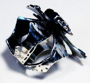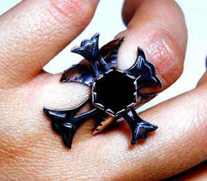 ●Ring04● ![]() 六角のオニキスを配し、 強めのいぶしのかかった、ハードながらも繊細なリングです。 ***六角のオニキスを配しました*** この石について>(気持ちの高ぶりを抑え、潜在パワーを強化する、 魔避けの石といわれています)