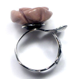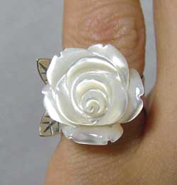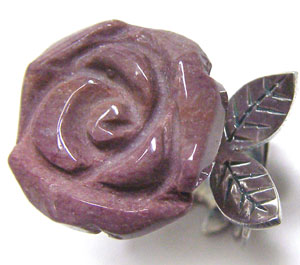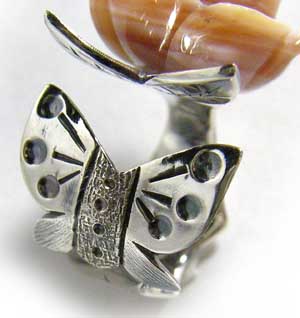 ご好評いただいております!^^!喜 バラ(お花)の形にカービング(彫りの入った)された石に シルバーの蝶モチーフが飛んできたような!?ちょっとストーリーのある 印象的なピンキーリングです。 横にはねた葉っぱモチーフもさらに!ニュアンスを出してくれています。